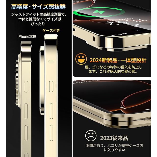 【対応機種】この製品はiPhone16 Pro Max(6.9インチ・3眼カメラ)にのみ対応しています。他の機種には使用できませんので、ご購入前に対応機種をご確認よろしくお願いします。タッチやボタンにちゃんと機能できるように、上部カバーとリアカバーの組み立てに隙間がでないことをご確認ください。(本製品内側の飛散防止フィルム加工は摩擦等により傷がつく場合があります。お手入れの際は柔らかい布などで優しく拭いてください。)