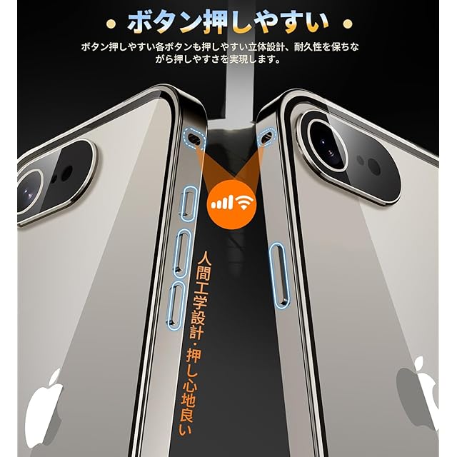 【メタルフレーム・背面クリア・信号干渉なし】このスマホケース iPhone16eは、高品質の航空アルミニウム合金製フレームを使用しており、おしゃれで高級感が溢れています。酸化の表面処理により保護カバーは擦れに強い、傷つきにくい。このiPhone16e全面保護ケースの背面として高透過率に経ったガラス素材を用い、本体の色をより良く楽しめる、より一層高級感を引き出せます。本体の美しさをエンジョイする際に、ご好みの写真・ステッカーなども入れ、カスタマイズが可能です。このiPhone16e ケースは信号強度が影響を受けないように設計されています。ケースはマグネットを使用しない、電波を遮らないように受信専用の穴を設けてあるため、信号は良好で、WiFiは遮られていません。