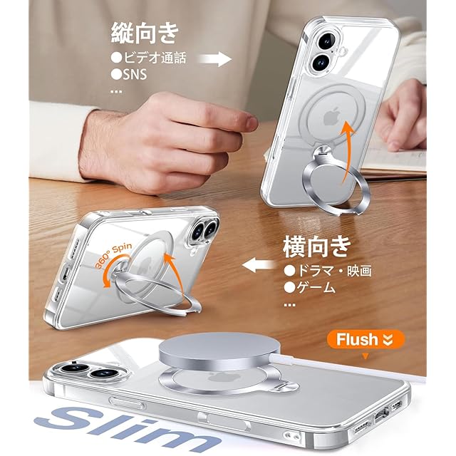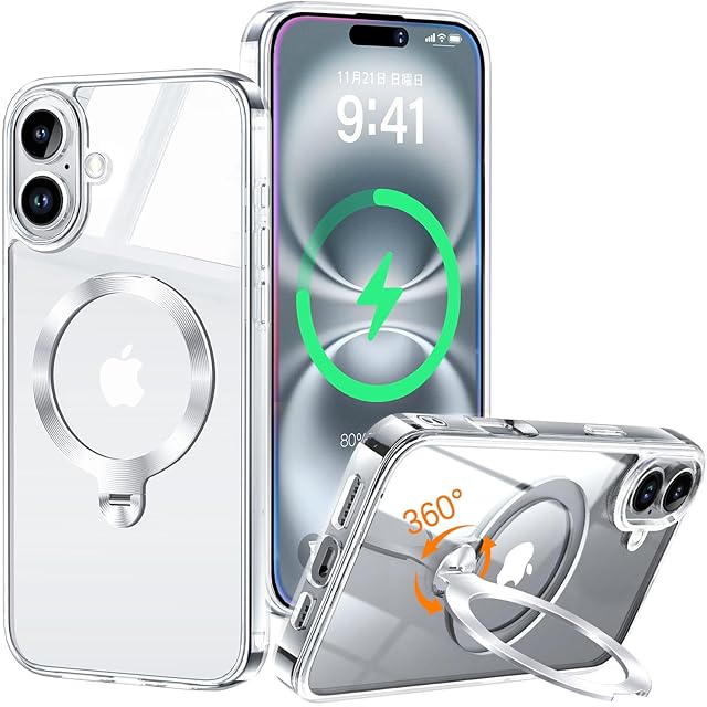 商品名:【全身極上クリア・360°回転スタンド】ZapNet iPhone 16 用 ケース Magsafe 対応 [定点スタンド・超絶安定性][極透明]ストラップホール付き マグセーフ ワイヤレス充電対応 黄変防止 米軍MIL規格取得・耐衝撃 アイホン16 ケース マホケース16 人気 6.1インチ(クリア)