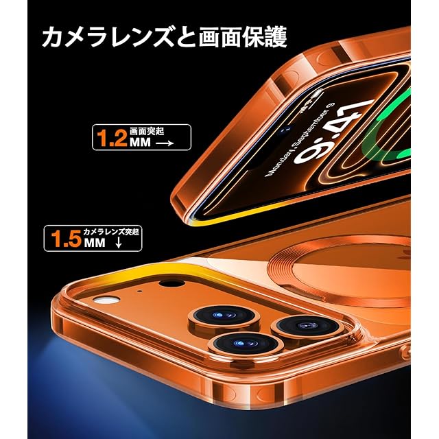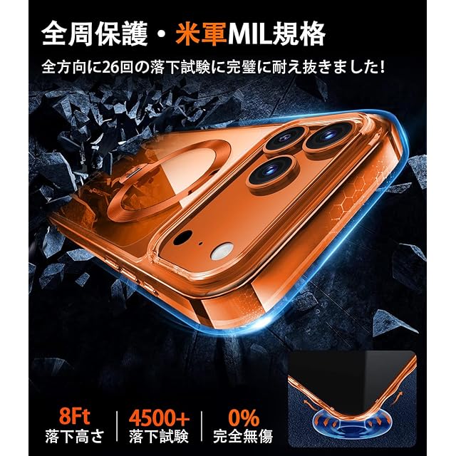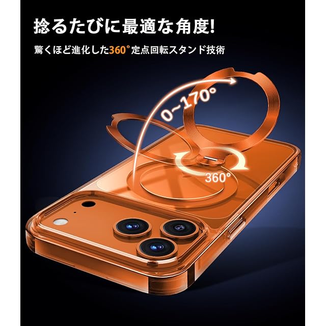 商品名:【オレンジ専用色・360°回転CD スタンド】ZapNet iPhone 17 Pro Max用 クリア ケース Magsafe 対応 [定点スタンド・超絶安定性][本体を再現・極透明]ストラップホール付き マグセーフ ワイヤレス充電対応 黄変防止 米軍MIL規格取得・耐衝撃 アイホン17プロマックスケース マホケース17 Pro Max 人気 6.9インチ(オレンジ)