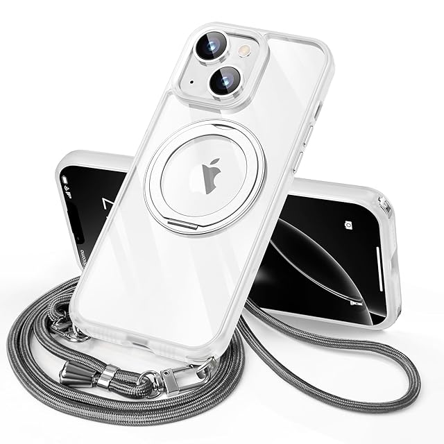 商品名:iPhone 14 / 13 用 ケース ダブルリング付き ショルダー ストラップ付き 多機能360度回転スタンド MagSafe対応 ワイヤレス充電対応 耐衝撃 薄型 透明 PC + 軽量 シリコン TPUバンパー おしゃれ アイフォン 13 14 用 6.1インチ ケース スマホケース (クリア, iPhone 14/13)