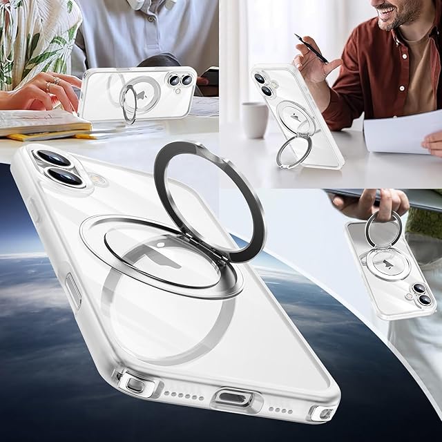 商品名:iPhone 16 用 ケース ダブルリング付き ショルダー ストラップ付き 多機能360度回転スタンド MagSafe対応 ワイヤレス充電対応 耐衝撃 カメラレンズ保護 両眼 6.1インチ いphone16 用 ケース 薄型 透明 PC + 軽量 シリコン TPUバンパー おしゃれ スマホケース (クリア, iPhone 16)