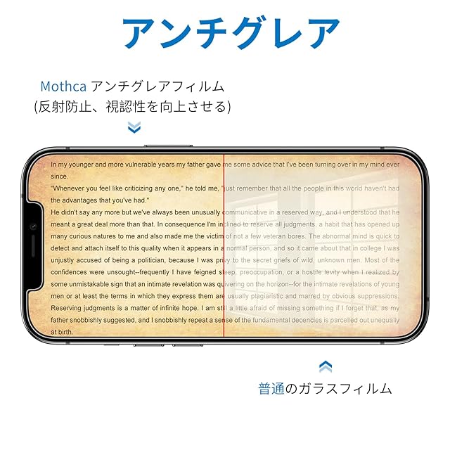 商品名:Mothca アンチグレア iPhone 12 mini対応 ガラスフィルム 強化ガラス 液晶保護フィルム サラサラ タッチ感 日本旭硝子製素材 反射防止 指紋防止 硬度9H 飛散防止 キズ防止 衝撃吸収 撥油性 疎水性 ゲームフィルム 5.4インチ