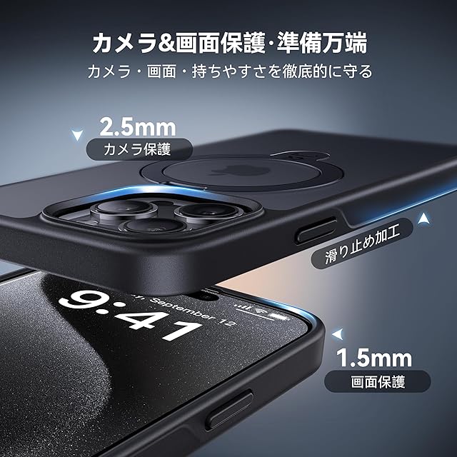 商品名:【2025最高傑作&定点360度回転】CASEKOO iPhone 15 Pro Max 用 ケース 超強磁力 米軍MIL規格 耐衝撃 高耐久性【横縦両立・角度調整】指紋防止/マット仕上げ/黄変防止/薄型半透明 ストラップホール付き ワイヤレス充電対応 アイフォン15pro max用 ケース(ブラック)