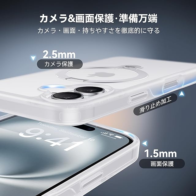 商品名:【2025最高傑作&定点360度回転】CASEKOO iPhone 16 用 ケース 米軍MIL規格 耐衝撃 MagSafe対応 高耐久性【横縦両立・角度自由調整】 最大25W急速充電対応 指紋防止/マット仕上げ/黄変防止/半透明 超強磁力 ラップホール付き ワイヤレス充電対応 アイフォン16 用ケース 6.1インチ「MagicStand Pro」(マットクリア)