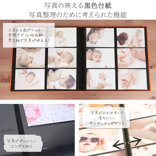 ポリプロピレン製L判3段×2列ポケット3層黒エンボス台紙20枚
