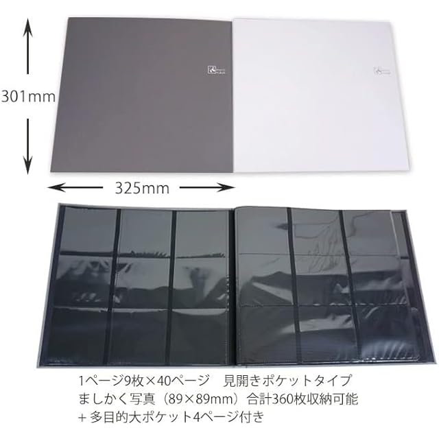 ポリプロピレン製スクエア判3段×3列ポケット3層黒エンボス台紙20枚(40ページ)