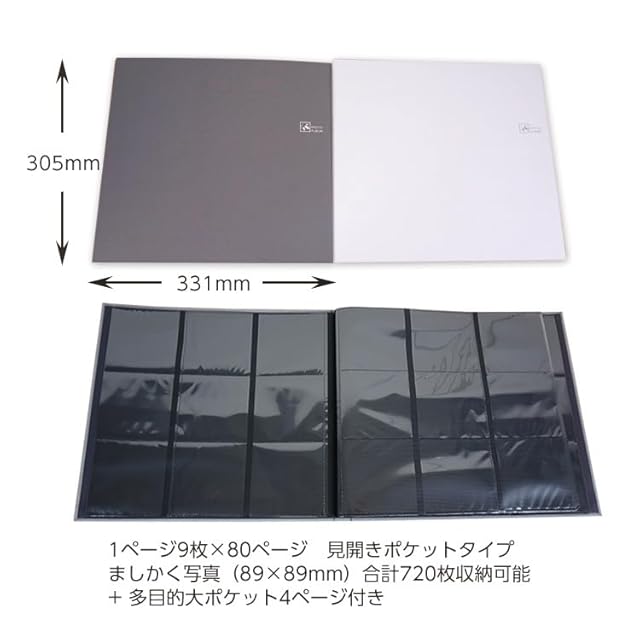 ポリプロピレン製スクエア判3段×3列ポケット3層黒エンボス台紙40枚(80ページ)