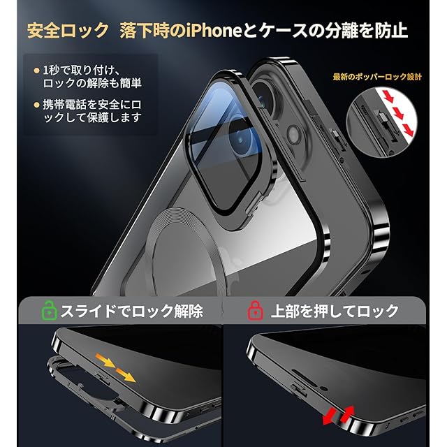 【ロック機能付き&覗き見防止】このいphone 16 pro ケース は上部にセキュリティロックが付いています。 トップボタンロックを軽くスライドさせるだけで、1秒でケースのロックが解除されます! 同時に、このセキュリティメカニカルロックは、ケースの前面と背面をしっかりとロックし、携帯電話を落としても、お客様のiphoneがこのiphone16プロ 両面 ケースから分離することはありません。 iphone 16 pro 覗き見防止ケースには、左右25°の視野範囲をサポートする覗き見防止スクリーンプロテクターが内蔵されています。注意:インストール時は、説明書の図示またはインストールビデオを参照し、凹凸部分を正しく合わせて、前後のカバーが密着するようにしてください