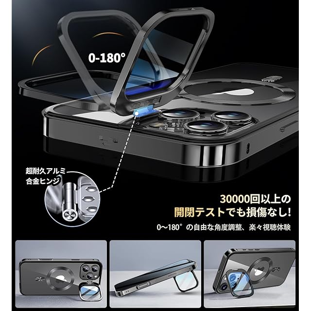 【多機能隠しスタンド&カメラレンズ保護】このiphone 16 pro ケース には、隠しレカメラマウントとレンズ保護という革新的な二重機能が付属しています。 超軽量のアルミニウム合金製レンズマウントは、30,000回以上の開閉テストを行い、品質と耐久性をしています。 さらに、カメラマウントには9H強化ガラスプロテクターが付属しており、傷やほこり、汚れからしっかりと保護します。 いつでもどこでも0°~180°に調整でき、ゲームやビデオ、FaceTimeを楽しむことができます。