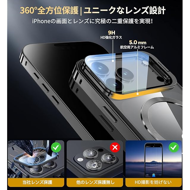 商品名:KELLCASE【カメラレンズ保護・スタンド+覗き見防止+MagSafe対応 】iPhone 17 Pro Max 用 ケース 全面保護 隠しスタンド付き ロック付き 両面 マグネット式 アイフォン17プロマックス カバー ストラップホール付き透明背面 メタルフレーム 磁石 ワイヤレス充電対応 9H強化ガラス 高感度タッチ あいふぉん17 promax 用 ケース 6.9インチ(ブラック)