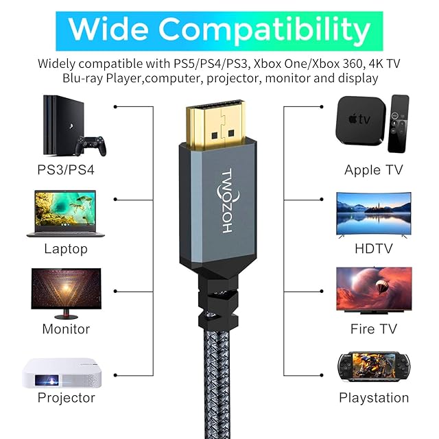 商品名:HDMI ケーブル 10M, Twozoh HDMI 2.0 4K/60Hz 2160p 1080p 3D HDCP 2.2 ARC 規格, 編組ナイロン, Nintendo Switch、PS5、PS3、PS4、PC、プロジェクター、HDTV, Xboxなど適用, 高速イーサネット対応