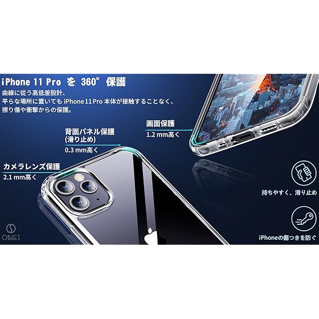 商品名:ONES HD全透明 iPhone 11Pro ハード ケース 米軍MIL規格 超耐衝撃 エアバッグ 〔 高靭性強化PCガードボード ? 高弾性衝撃吸収TPUバンパー 〕『 画面 ・ レンズ保護、Qi充電 』 滑り止め 超軽量 持ちやすい 美しい 黄変防止 クリア カバー
