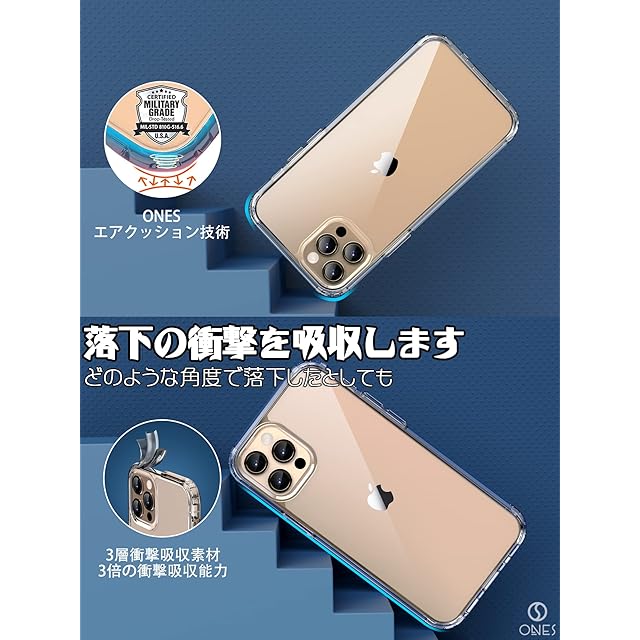 商品名:ONES HD全透明 iPhone13Pro ハード ケース 米軍MIL規格 超耐衝撃 エアバッグ 〔 高靭性強化PCガードボード ? 高弾性衝撃吸収TPUバンパー 〕『 画面 ・ レンズ保護、Qi充電 』 滑り止め 超軽量 持ちやすい 美しい 黄変防止 クリスタル クリア カバー