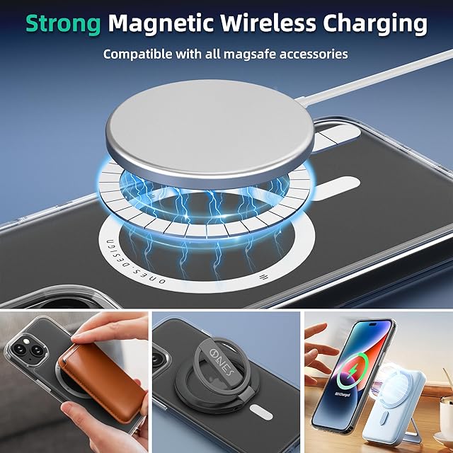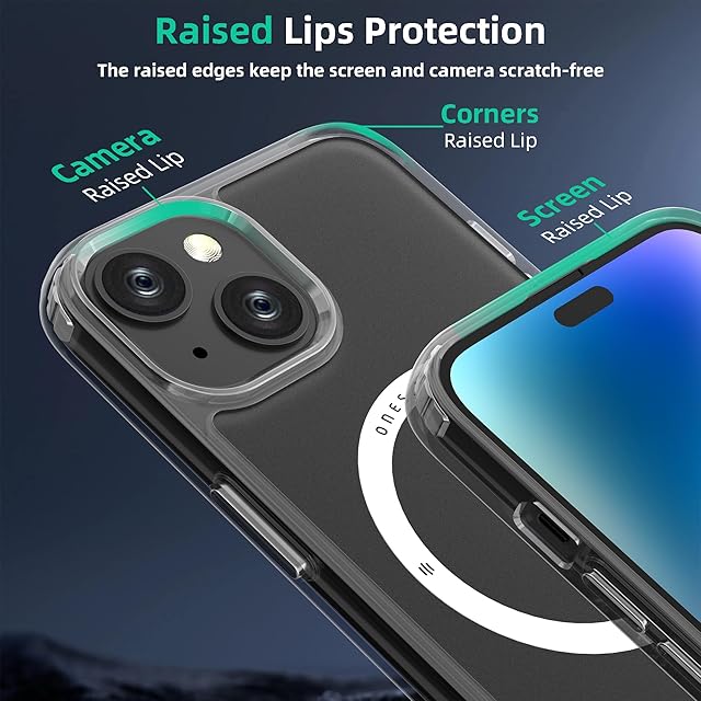 ONES 艶消し・透明 iPhone13mini 超強磁性MagSafe対応 ハードケース 米軍MIL規格 エアバッグ 超耐衝撃 レンズ保護 画面保護 「 高靭性強化PC保護板 ? 高弾性衝撃吸収・シリコンバンパー 」 Qiワイヤレス充電 傷防止 滑り止め 超軽量 持ちやすい 黄ばみ防止 クリスタル クリア マグネット カバー