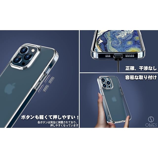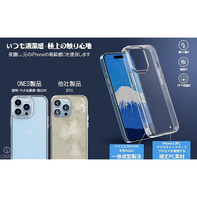 商品名:ONES 艶消し ・ 透明 iPhone14ProMax用 ハード ケース 米軍MIL規格 超耐衝撃 エアバッグ〔 マット感・高靭性強化PCガードボード ? 高弾性衝撃吸収TPUバンパー 〕『 画面 ・ レンズ保護、フラットエッジ 』〔 指紋防止、黄変防止 〕 滑り止め 超軽量 Qi充電 つや消し カバー
