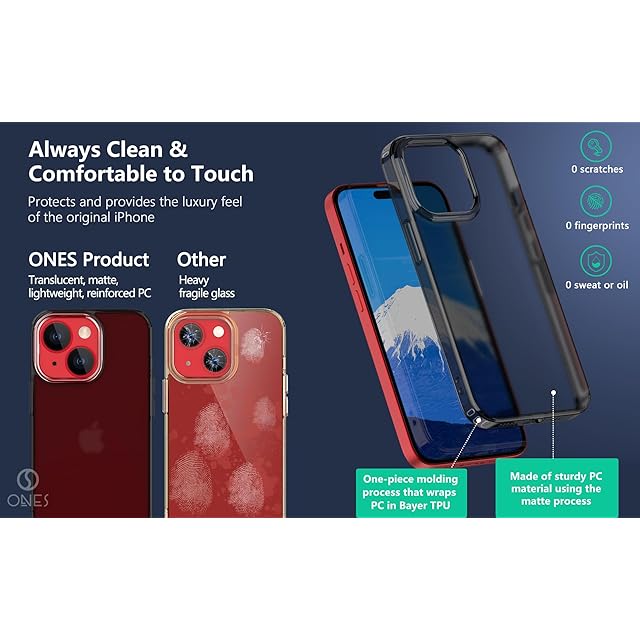 【 指紋防止 ・ 耐衝撃 エアバッグ ・ 超軽量 薄型 】 ONES 艶消し ・ 半透明 iPhone15 ハードケース 米軍MIL規格 〔 マット感・高靭性・強化PC保護板 ? 高弾性・衝撃吸収・シリコンバンパー 〕『 レンズ保護 ・ 画面保護 』 Qi充電 ストラップホール 滑り止め 黄変防止 つや消し クリア カバー