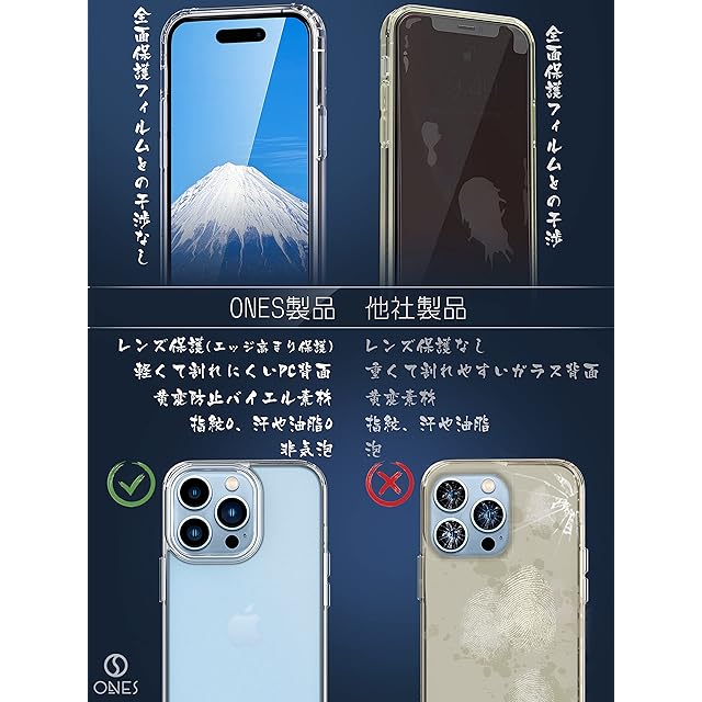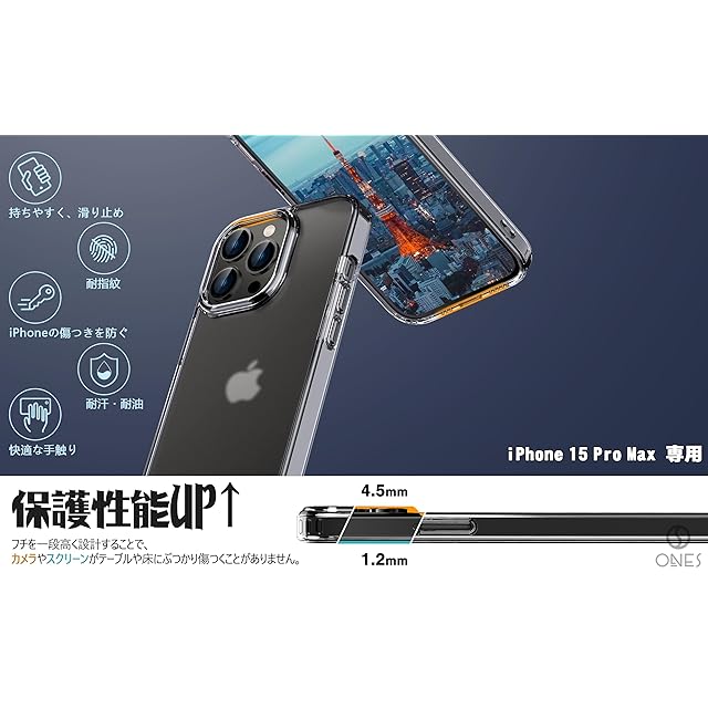 商品名:【 エアバッグ ・ 超軽量 薄型 ・ 指紋防止 】 ONES 透明 iPhone15ProMax ハードケース 米軍MIL規格 超耐衝撃 滑り止め 【 艶消し・強化PC保護板 ? 衝撃吸収・シリコンバンパー 】 レンズ保護 画面保護 Qiワイヤレス充電 つや消し マット感 黄変防止 クリア カバー