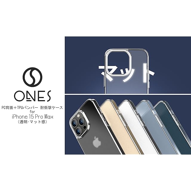 【 エアバッグ ・ 超軽量 薄型 ・ 指紋防止 】 ONES 透明 iPhone15ProMax ハードケース 米軍MIL規格 超耐衝撃 滑り止め 【 艶消し・強化PC保護板 ? 衝撃吸収・シリコンバンパー 】 レンズ保護 画面保護 Qiワイヤレス充電 つや消し マット感 黄変防止 クリア カバー
