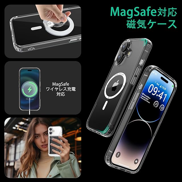 商品名:ONES HD超透明 iPhone16Plus 用 超強磁性MagSafe対応 ハードケース 米軍MIL規格 エアバッグ 超耐衝撃 レンズ保護 画面保護 「 高靭性強化PC保護板 ✚ 高弾性衝撃吸収·シリコンバンパー 」 Qiワイヤレス充電 傷防止 滑り止め 超軽量 持ちやすい 黄ばみ防止 クリスタル クリア マグネット カバー