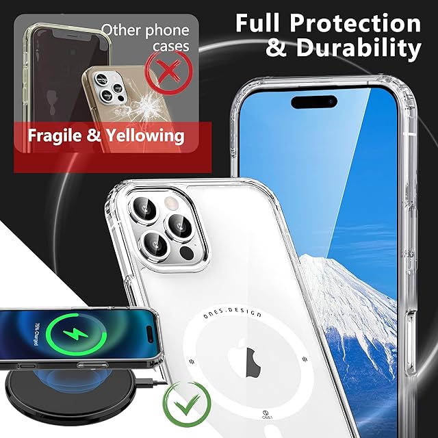 ONES HD超透明 iPhone16ProMax 用 超強磁性MagSafe対応 ハードケース 米軍MIL規格 エアバッグ 超耐衝撃 レンズ保護 画面保護 「 高靭性強化PC保護板 ✚ 高弾性衝撃吸収·シリコンバンパー 」 Qiワイヤレス充電 傷防止 滑り止め 超軽量 持ちやすい 黄ばみ防止 クリスタル クリア マグネット カバー