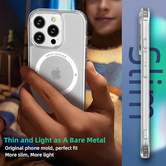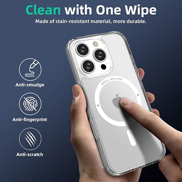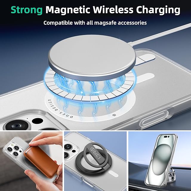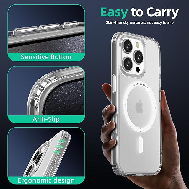 ONES 艶消し · 透明 iPhone16ProMax 用 超強磁性MagSafe対応 ハードケース 米軍MIL規格 エアバッグ 超耐衝撃 レンズ保護 画面保護 「 高靭性強化PC保護板 ✚ 高弾性衝撃吸収·シリコンバンパー 」 Qiワイヤレス充電 傷防止 滑り止め 超軽量 持ちやすい 黄ばみ防止 クリスタル クリア マグネット カバー