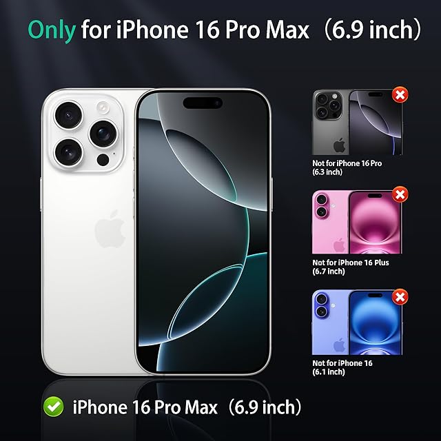 【 全面的な保護設計 】 画面とカメラ部分は iPhone16ProMax よりも高く設計されており、四隅にエアクッションが内蔵されているため、落下時の衝撃から保護します。米軍規格に準拠した頑丈な作り。