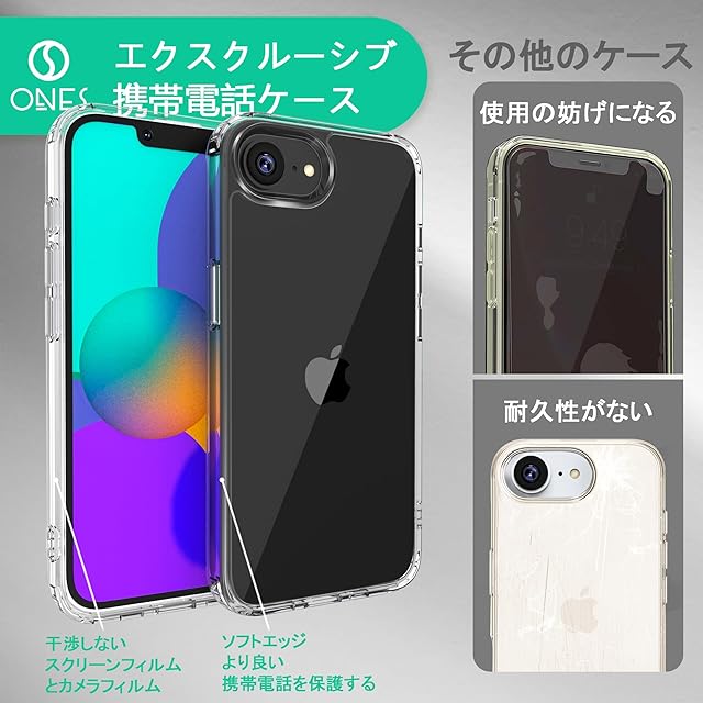 ONES iPhone 16e ハードケース 超透明 米軍MIL規格 超耐衝撃 エアバッグ 〔 高靭性強化PCガードボード ✚ 高弾性衝撃吸収TPUバンパー 〕『 画面 · レンズ保護、滑り止め、Qi充電 』 超軽量 持ちやすい 黄変防止 クリスタル クリア カバー