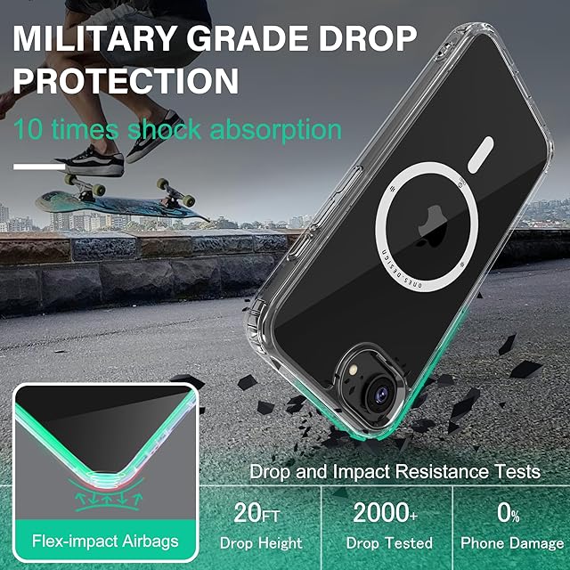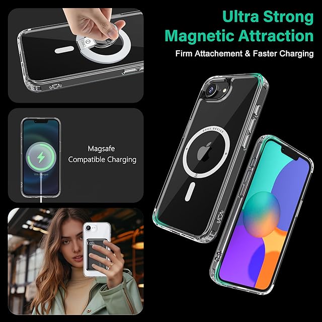 ONES iPhone16e 超強磁性MagSafe対応ケース 超透明 米軍MIL規格 超耐衝撃 エアバッグ 〔 高靭性強化PCガードボード ✚ 高弾性衝撃吸収TPUバンパー 〕『 画面 · レンズ保護、滑り止め、Qi充電 』 超軽量 持ちやすい 黄変防止 クリスタル クリア カバー