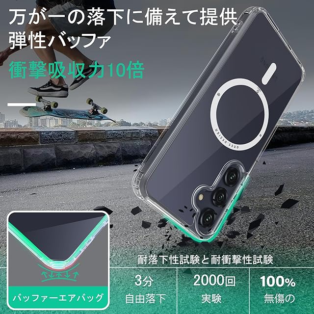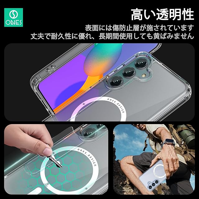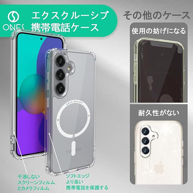 商品名:ONES Galaxy S25 / S24 超強磁性MagSafe対応ケース 超透明 米軍MIL規格 超耐衝撃 エアバッグ 〔 高靭性強化PCガードボード ✚ 高弾性衝撃吸収TPUバンパー 〕『 画面 · レンズ保護、滑り止め、Qi充電 』 超軽量 持ちやすい 黄変防止 クリスタル クリア カバー