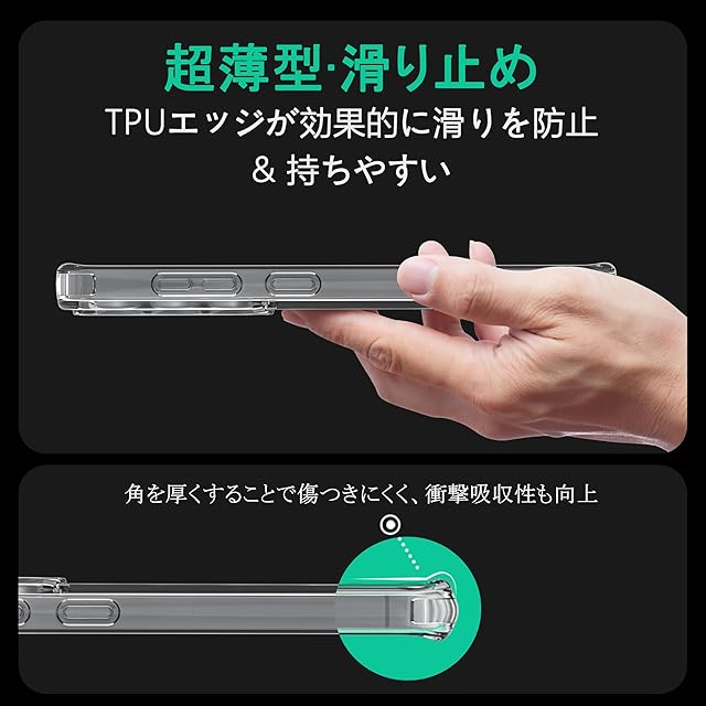 Galaxy S25 / S24 用の革新的な透明ハイブリッドケースは、高磁力MagSafe磁気システムを搭載し、各種MagSafe対応アクセサリーの装着やQiワイヤレス充電を可能にします。画面とカメラレンズを保護する高さのある縁取り設計で、大切な Galaxy S25 / S24 を傷から守ります。四隅には衝撃吸収エアクッションを内蔵し、米国軍事MIL規格に準拠した耐久性を実現。PCハードバックパネルとシリコン製ソフトフレームの組み合わせにより、優れた耐衝撃性を提供します。背面パネルには特殊な耐傷コーティングが施され、長期使用でも傷つきにくい仕様です。高い透明度を維持する素材を採用し、 Galaxy S25 / S24 本来の美しいデザインを損なうことなく表現。さらに、滑り止め加工により手からの落下を防止します。薄型で軽量な人間工学的設計により、快適な握り心地を実現。スクリーン保護フィルムを貼った状態でも安定して置けるよう、表裏の四隅を高く設計しています。長期使用でも黄ばみにくい高品質素材を使用し、 Galaxy S25 / S24 の魅力を最大限に引き出します。 Galaxy S25 / S24 の操作性を損なうことなく、確実な保護性能を提供します、優れた保護性能と美しいデザインを両立させた製品です。