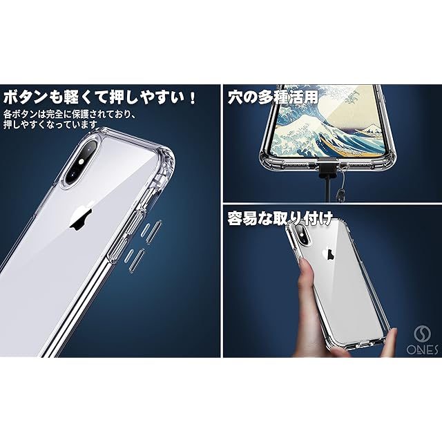 商品名:ONES HD全透明 iPhone Xs/X ハード ケース 米軍MIL規格 超耐衝撃 エアバッグ 〔 高靭性強化PCガードボード ✚ 高弾性衝撃吸収TPUバンパー 〕『 画面 · レンズ保護、Qi充電 』 滑り止め 超軽量 持ちやすい 美しい 黄変防止 クリア カバー