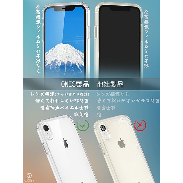 ONES HD全透明 iPhone XR ハード ケース 米軍MIL規格 超耐衝撃 エアバッグ 〔 高靭性強化PCガードボード ✚ 高弾性衝撃吸収TPUバンパー 〕『 画面 · レンズ保護、Qi充電 』 滑り止め 超軽量 持ちやすい 美しい 黄変防止 クリア カバー