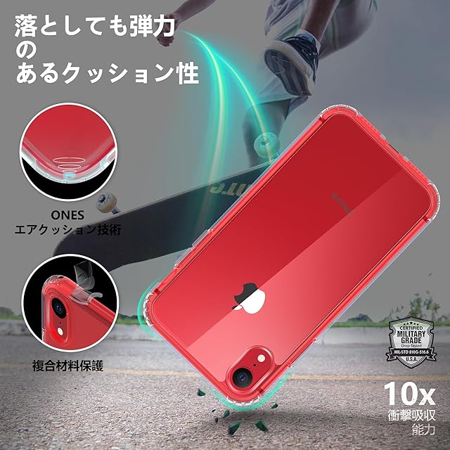 ONES HD超透明 iPhone XR ハード ケース 米軍MIL規格 超耐衝撃 エアバッグ 〔 高靭性強化PCガードボード ✚ 高弾性衝撃吸収TPUバンパー 〕『 画面 · レンズ保護、Qi充電 』 滑り止め 超軽量 持ちやすい 美しい 黄変防止 クリア カバー