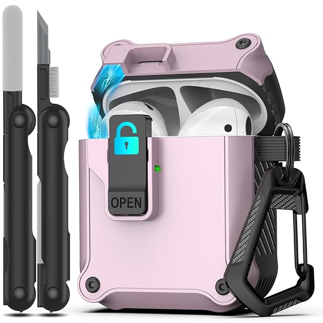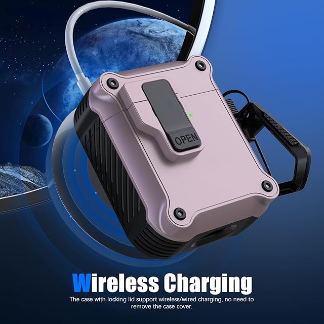 【ユニークなセキュリティロックと自動ポップアップ】アップグレードされたセキュリティロック設計により、開閉が簡単になります。「OPEN」ボタンを押すと、ケースの上部が自動的に開きます。 AirPods 充電ケースをしっかりと閉じた状態に保ち、カバーが落ちることを防ぎます。