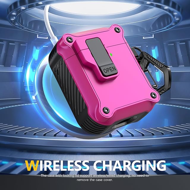 【ユニークなセキュリティロックと自動ポップアップ】アップグレードされたセキュリティロック設計により、開閉が簡単になります。「OPEN」ボタンを押すと、ケースの上部が自動的に開きます。 AirPods 充電ケースをしっかりと閉じた状態に保ち、カバーが落ちることを防ぎます。