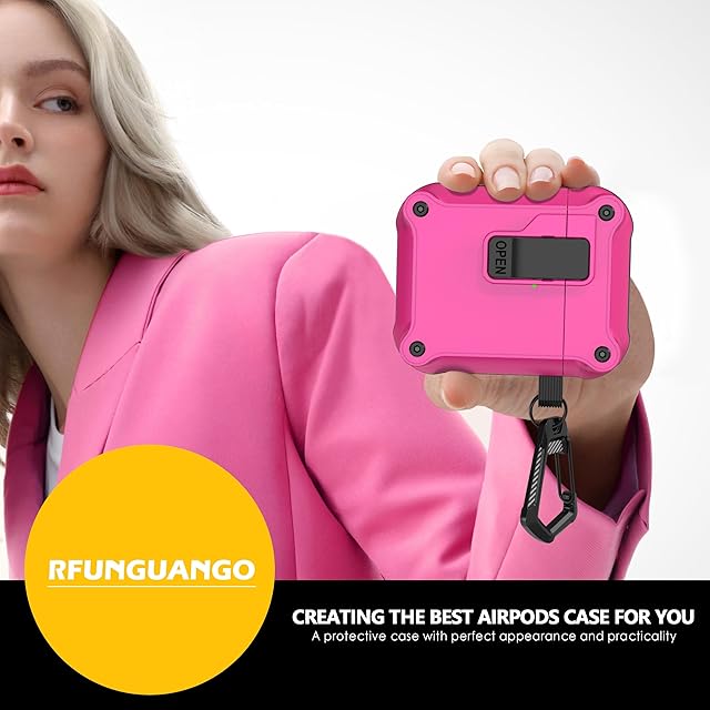 商品名:RFUNGUANGO Airpods 第2世代および第1世代用保護ケース 自動ポップアップ安全ロッククリップ付き、キーチェーン付きフルボディ耐衝撃ハードケース(無料クリーニングツール付き)-ブラック+ローズレッド