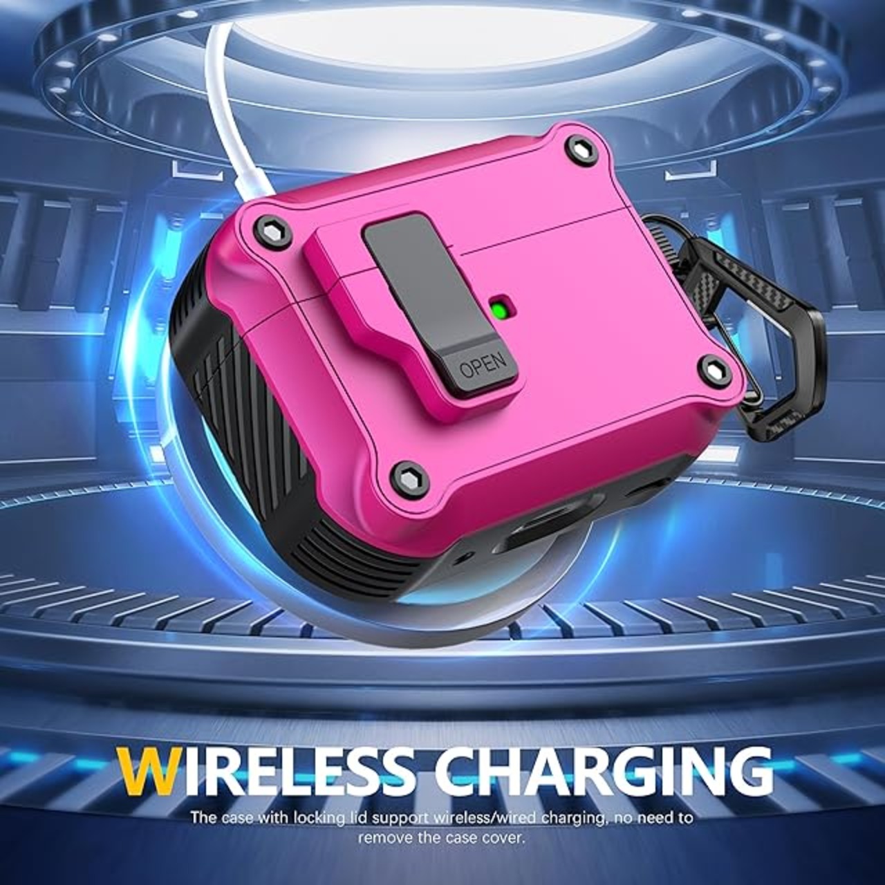 【スムーズな充電】有線充電と無線充電の両方に対応しており、充電するためにケースを外す必要はありません。 充電中は前面の LED インジケータライトが見えます。