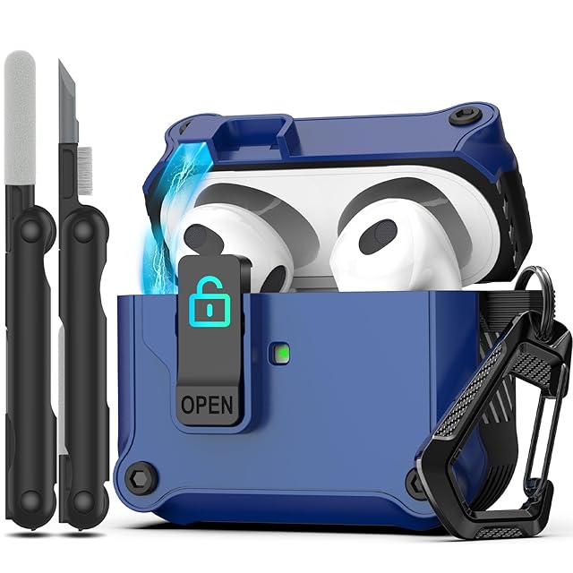 【ユニークなセキュリティロック】アップグレードされたセキュリティロック設計により、開閉が簡単になります。「開く」ボタンを押すと、ケースの上部が自動的に開きます。 Airpods 3 を簡単に持ち運ぶことができます。AirPods 充電ケースをしっかりと閉じた状態に保ち、カバーが落ちることはありません。