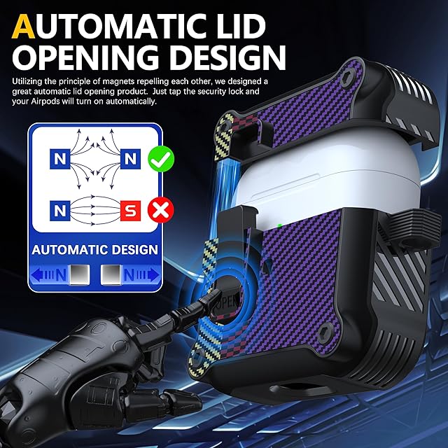 独自の安全ロック:改良された安全ロック設計により、開閉が簡単です。 「開く」ボタンを押すと、ケースの上部が自動的に開きます。 Airpodsの持ち運びが簡単 3. AirPods充電ケースをしっかりと閉じたままにし、ケースが外れることはありません。