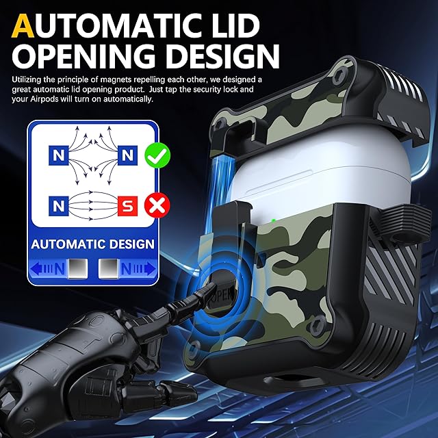 【ユニークなセキュリティロック】アップグレードされたセキュリティロック設計により、開閉が簡単になります。「開く」ボタンを押すと、ケースの上部が自動的に開きます。 Airpods 3 を簡単に持ち運ぶことができます。AirPods 充電ケースをしっかりと閉じた状態に保ち、カバーが落ちることはありません。