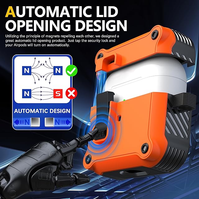 独自の安全ロック:改良された安全ロック設計により、開閉が簡単です。 「開く」ボタンを押すと、ケースの上部が自動的に開きます。 Airpodsの持ち運びが簡単 3. AirPods充電ケースをしっかりと閉じたままにし、ケースが外れることはありません。
