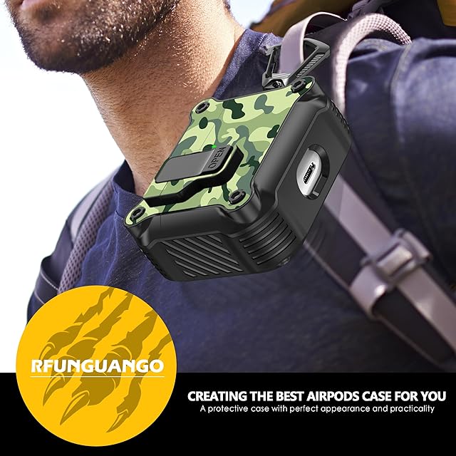 商品名:RFUNGUANGO Airpods 第 3 世代用ケース、安全なロック クリップ付き、フルボディ耐衝撃ハードシェル保護、 AirPod 第 3 世代 2021 用 AirPods 3 ケース [前面 LED 可視] - 熱帯雨林迷彩