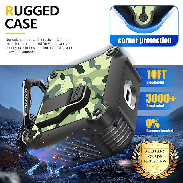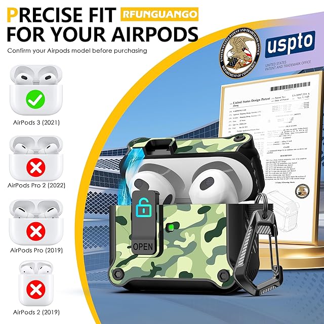 【ユニークなセキュリティロック】アップグレードされたセキュリティロック設計により、開閉が簡単になります。「開く」ボタンを押すと、ケースの上部が自動的に開きます。 Airpods 3 を簡単に持ち運ぶことができます。AirPods 充電ケースをしっかりと閉じた状態に保ち、カバーが落ちることはありません。