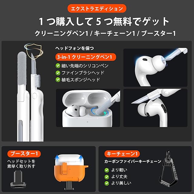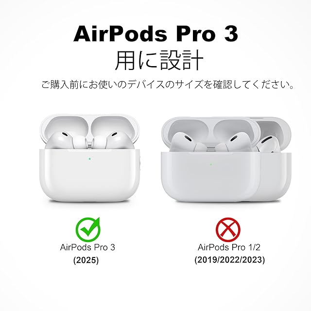 5. 正確なフィット感:AirPods Pro 3専用に設計されており、ぴったりとフィットし、充電ポートを内蔵しているため、分解せずに充電できます。