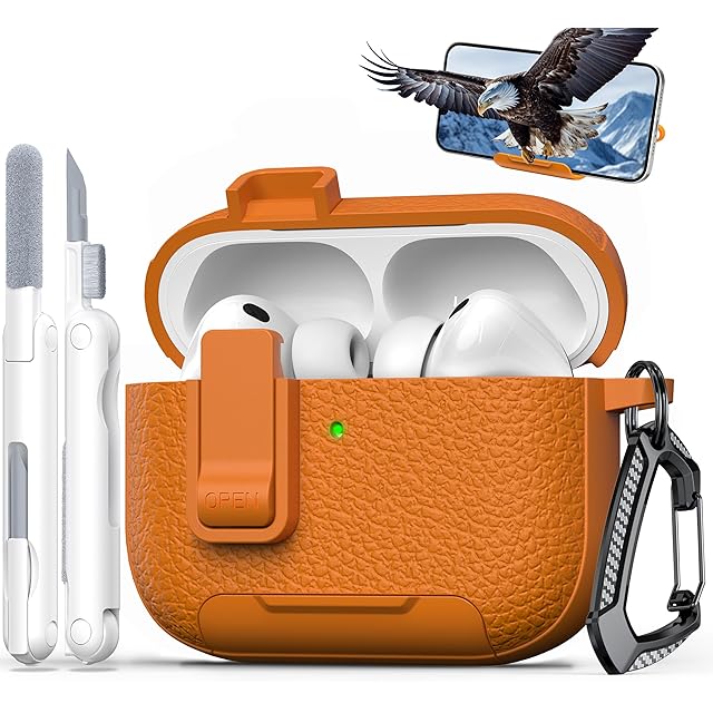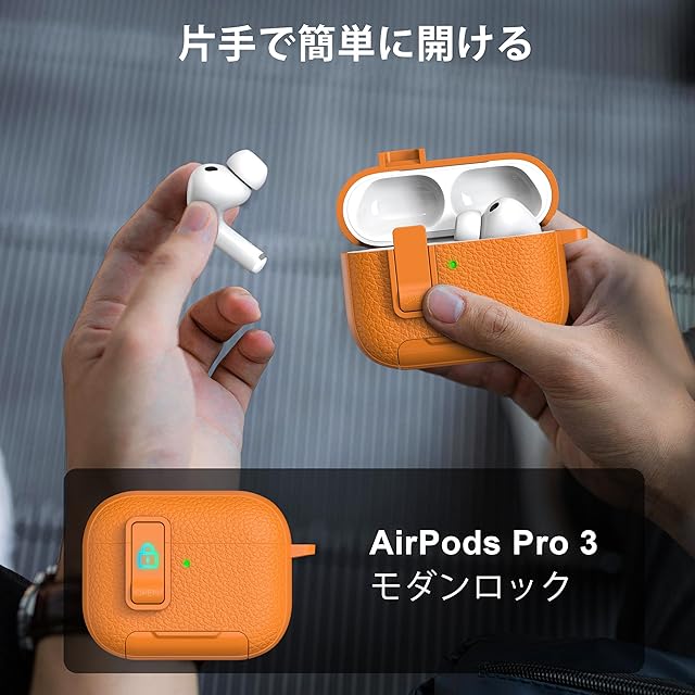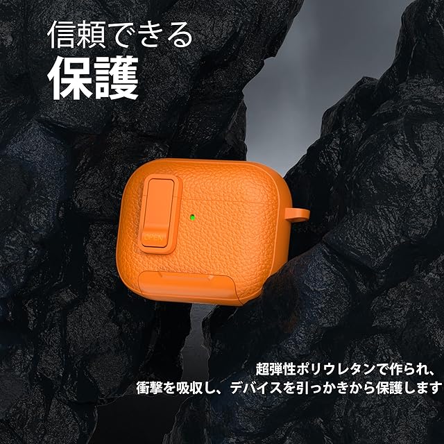 商品名:RFUNGUANGO AirPods Pro 3ケース レザー、キーチェーン、電話ホルダー付き。AirPods Pro 3ケースに対応。耐衝撃性と傷に強いオレンジ。