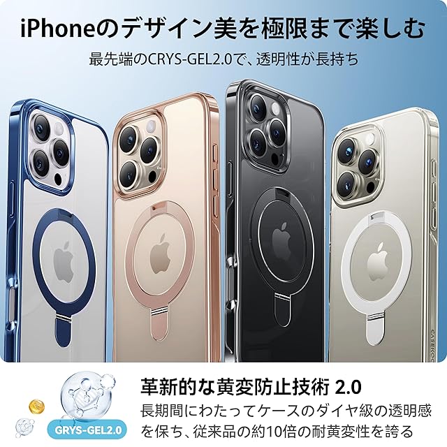 商品名:【8年間の技術結晶!4in1超万能モデル】CASEKOO iPhone 16 Pro 用 ケース クリア 米軍MIL規格 耐衝撃 隠しスタンド 横縦両立 最大25W急速充電対応 MagSafe対応 黄変防止 透明 ストラップホール付き ワイヤレス充電対応 いphone16pro 用ケース 6.3インチ「MagicStand」(クリアブラック)