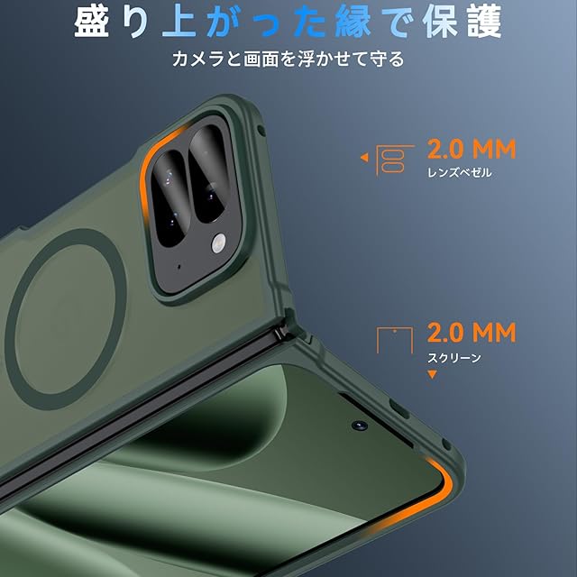【Pixel 10 Pro Fold専用・全面的保護設計】環境に優しい耐久性のある素材を採用したこの全包囲型ソフトPixel 10 Pro Fold ケース magsafeは、ピクセル10 Pro Fold専用設計で、18FT(約5.5m)の耐衝撃テストに合格。四隅にエアクッションと強化フロントカバーの組み合わせ、衝撃を約90%吸収し、不意の落下からもしっかり保護。また、0.001ミリメートルの精密な型開きと柔軟な素材で、取り付けや交換が簡単で、ほこりを防ぎます。
