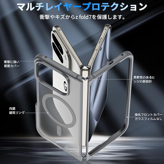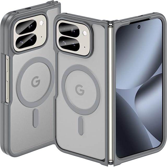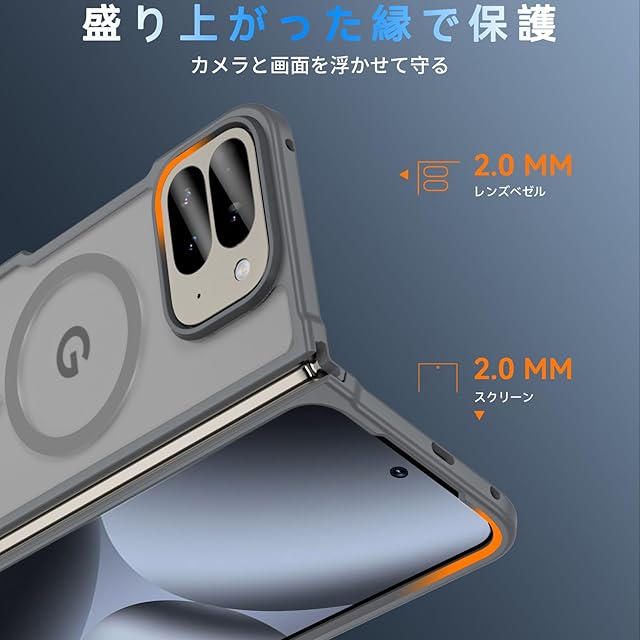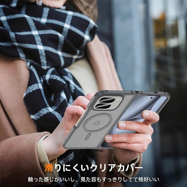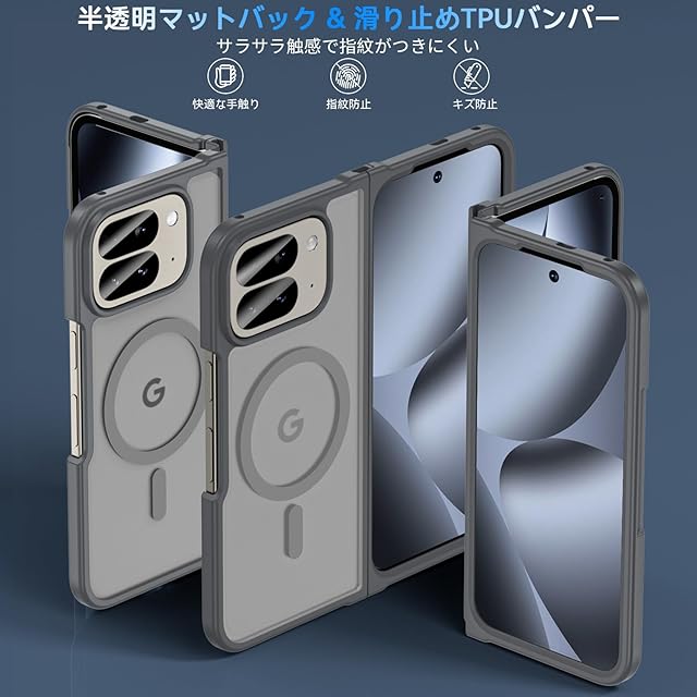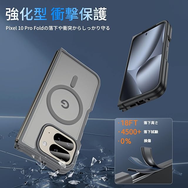 Pixel 10 Pro Fold ケース【MagSafe対応】 耐衝撃 米軍MIL規格 半透明 黄変防止 指紋防止 ワイヤレス充電対応 強化フロントカバー (グレー)