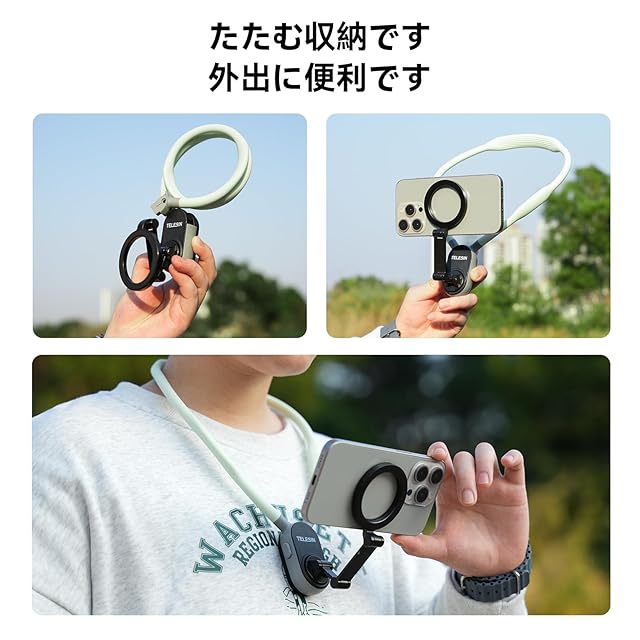 TELESIN スマホ ネックマウント携帯電話ネックレスマウントMagSafe対応 スマホホルダー 磁気マグネット iPhone対応 マグセーフ式 超強力磁力 スマホ撮影 スマートフォンMagsafeに対応 iPhone16/15 Pro/15Pro Max/14/13/12対応(あおみどり)